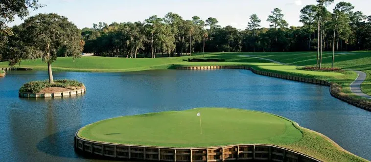 What is the name of the famous par-3 island green at TPC Sawgrass?