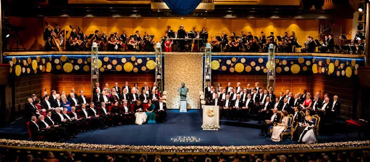Which Nordic city hosts the Nobel Prize ceremony each year?