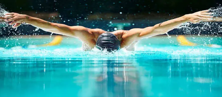 Which swimming stroke requires simultaneous arm pull and dolphin kick?