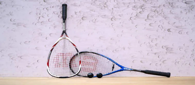 This racquet sport is played on a walled court with a small black ball.