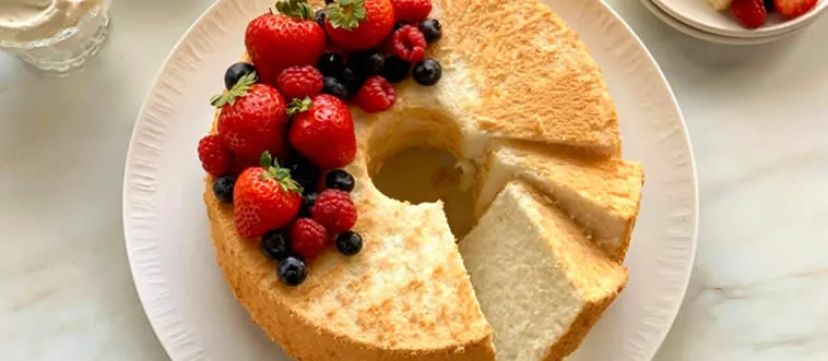 What is the primary ingredient that gives angel food cake its light and fluffy texture?