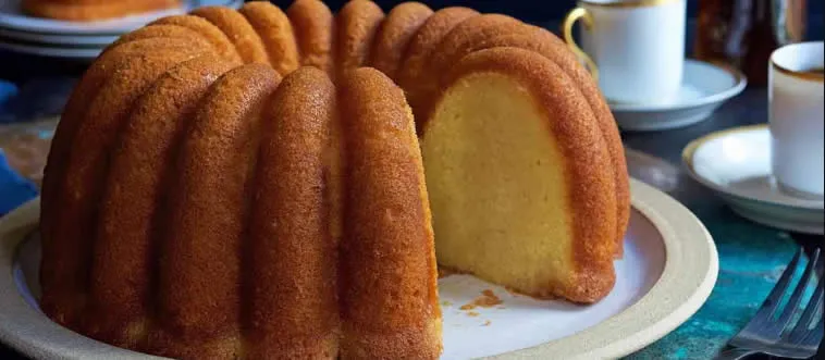 Which cake is soaked in syrup and often includes nuts?
