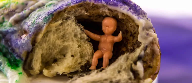 Which cake is associated with New Orleans and has a plastic baby inside?